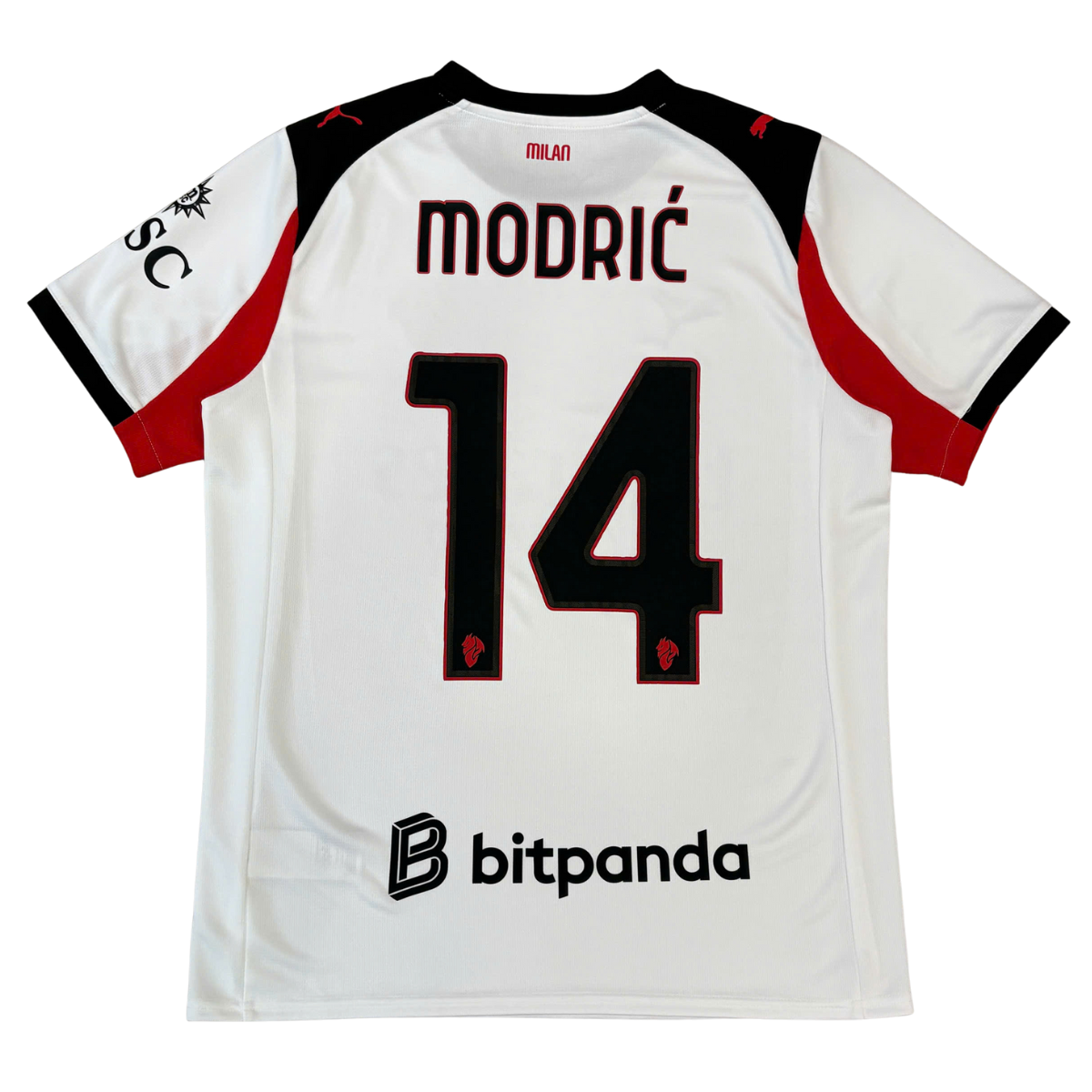 ÁO BÓNG ĐÁ AC MILAN 2025/26 SÂN KHÁCH CHÍNH HÃNG FAN + MODRIĆ #14 + BITPANDA - 779971-02