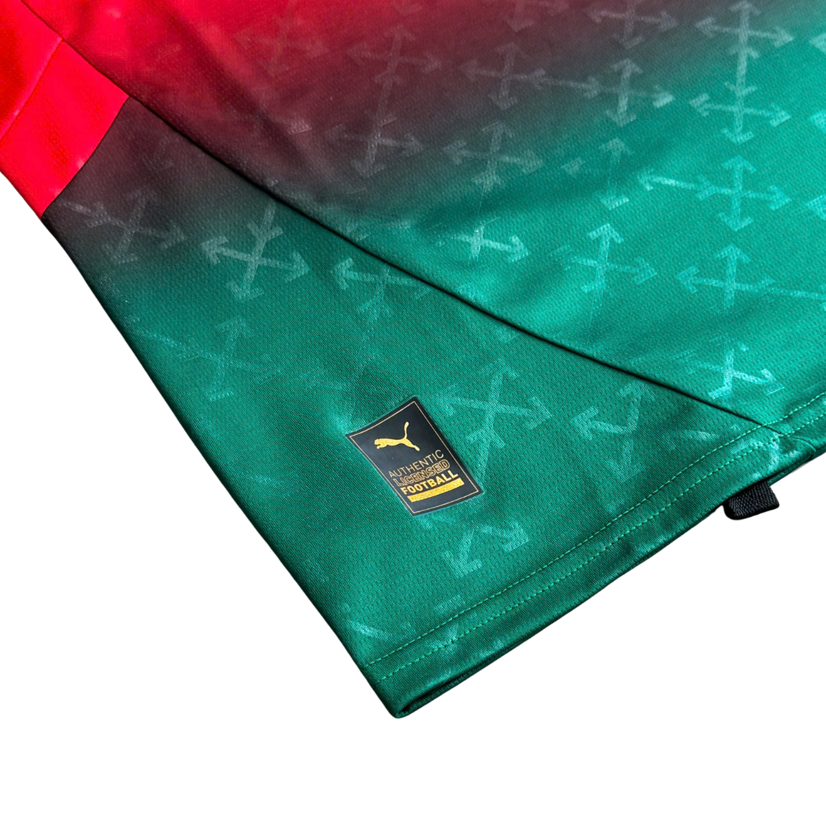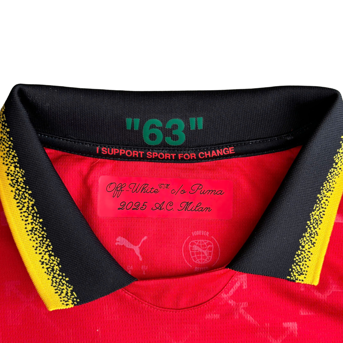 • Sự hợp tác đặc biệt: Được ra mắt trong bộ sưu tập Off‑White™ × AC Milan × PUMA, chiếc áo mang thông điệp về khát vọng và sáng tạo vượt ranh giới giữa bóng đá và thời trang.