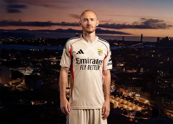 • Thiết kế: Nền trắng tinh khiết, điểm nhấn đỏ đô trên vai và cổ áo gợi nhớ màu truyền thống của Benfica.