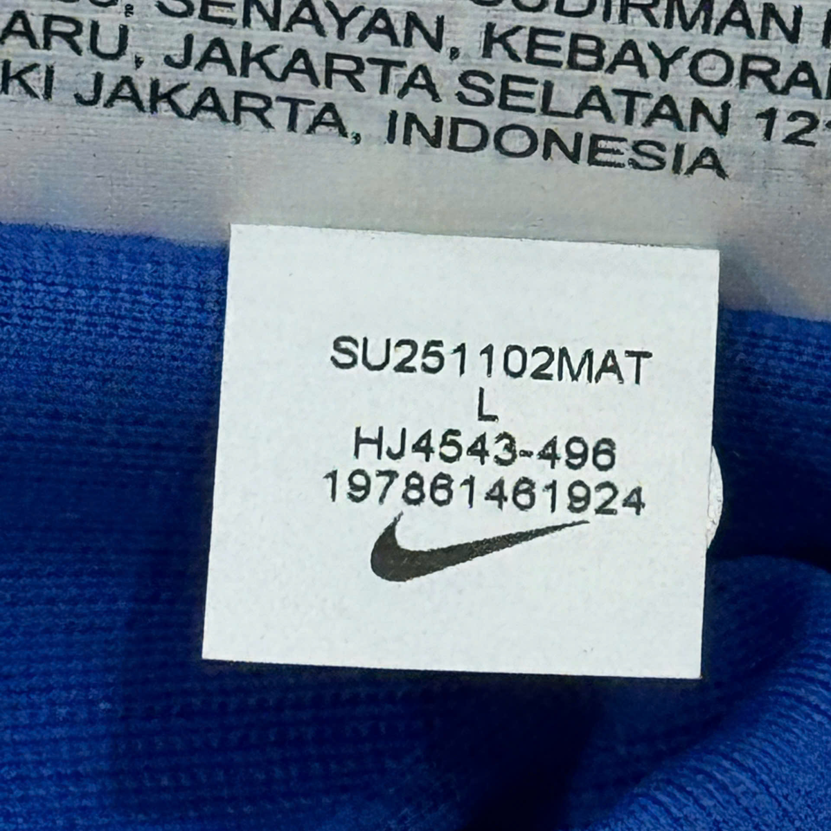 • Logo câu lạc bộ và Swoosh được xử lý tinh tế, viền màu trắng/đỏ tạo điểm nhấn nổi bật trên nền xanh – làm rõ bạn là fan lâu năm chứ không phải “lướt qua rồi”.