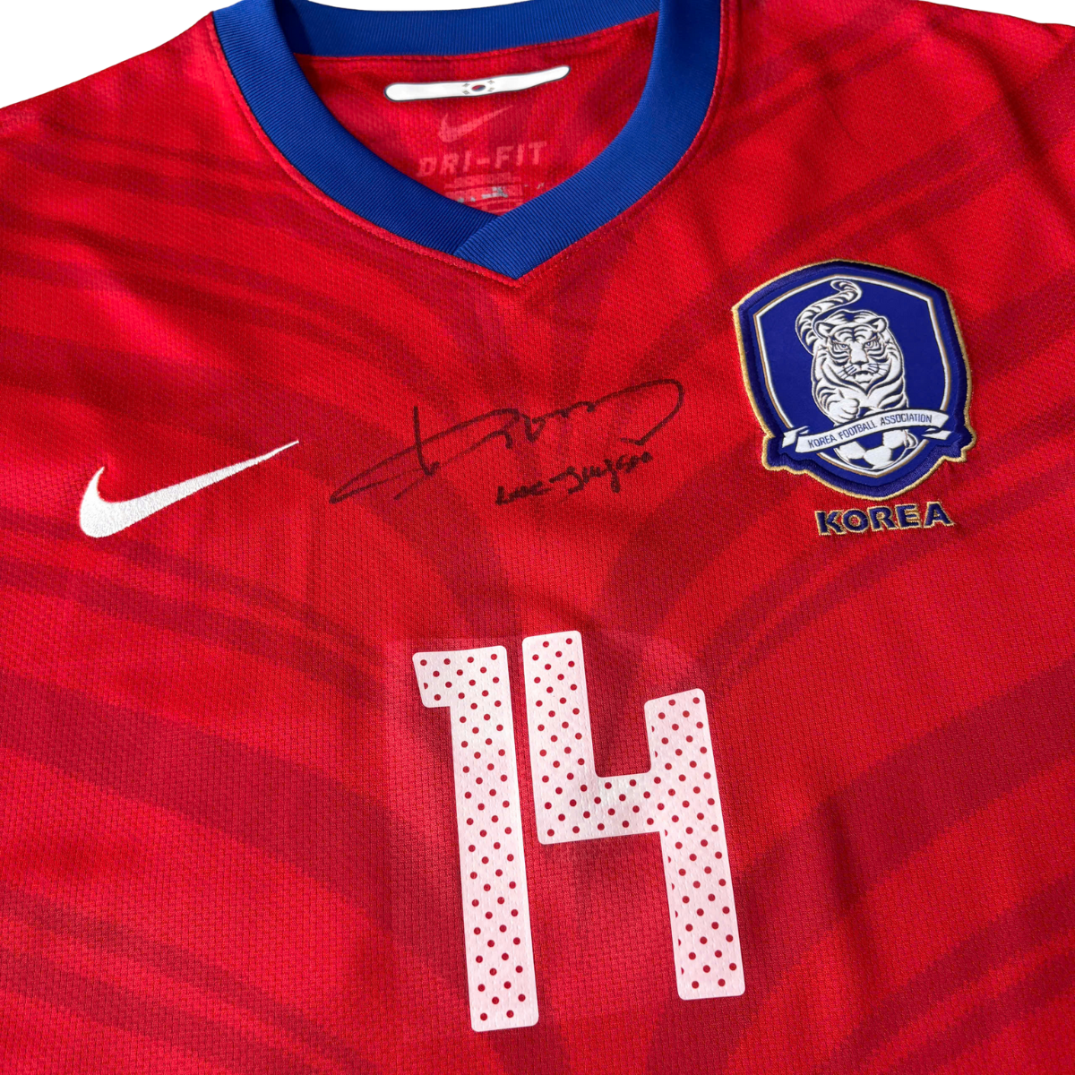 Áo bóng đá Hàn Quốc 2010/12 sân nhà – Jungsoo #14 + chữ ký Lee Jung Soo – Fan Version – Mã 377539-611 | Biểu tượng Taeguk Warriors World Cup