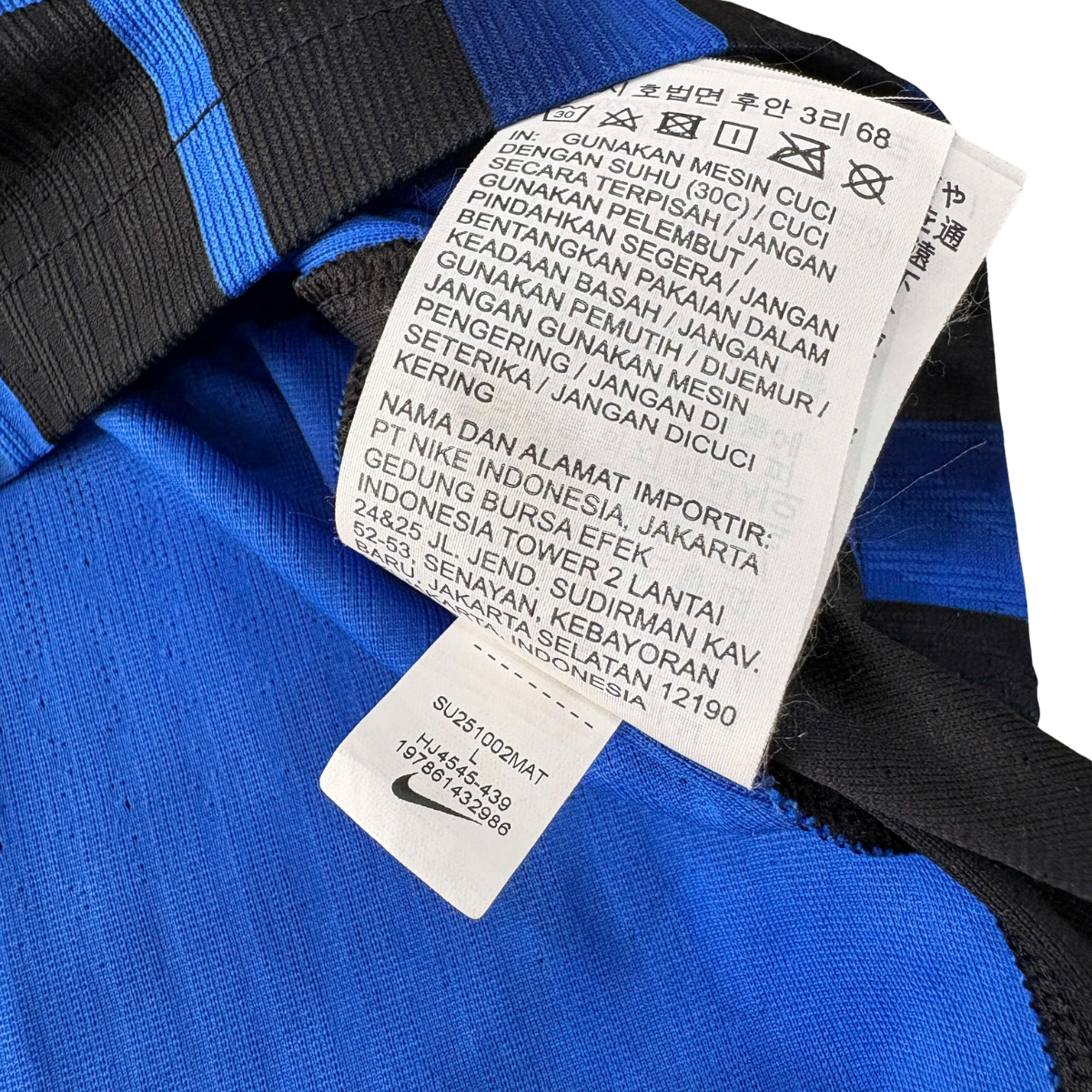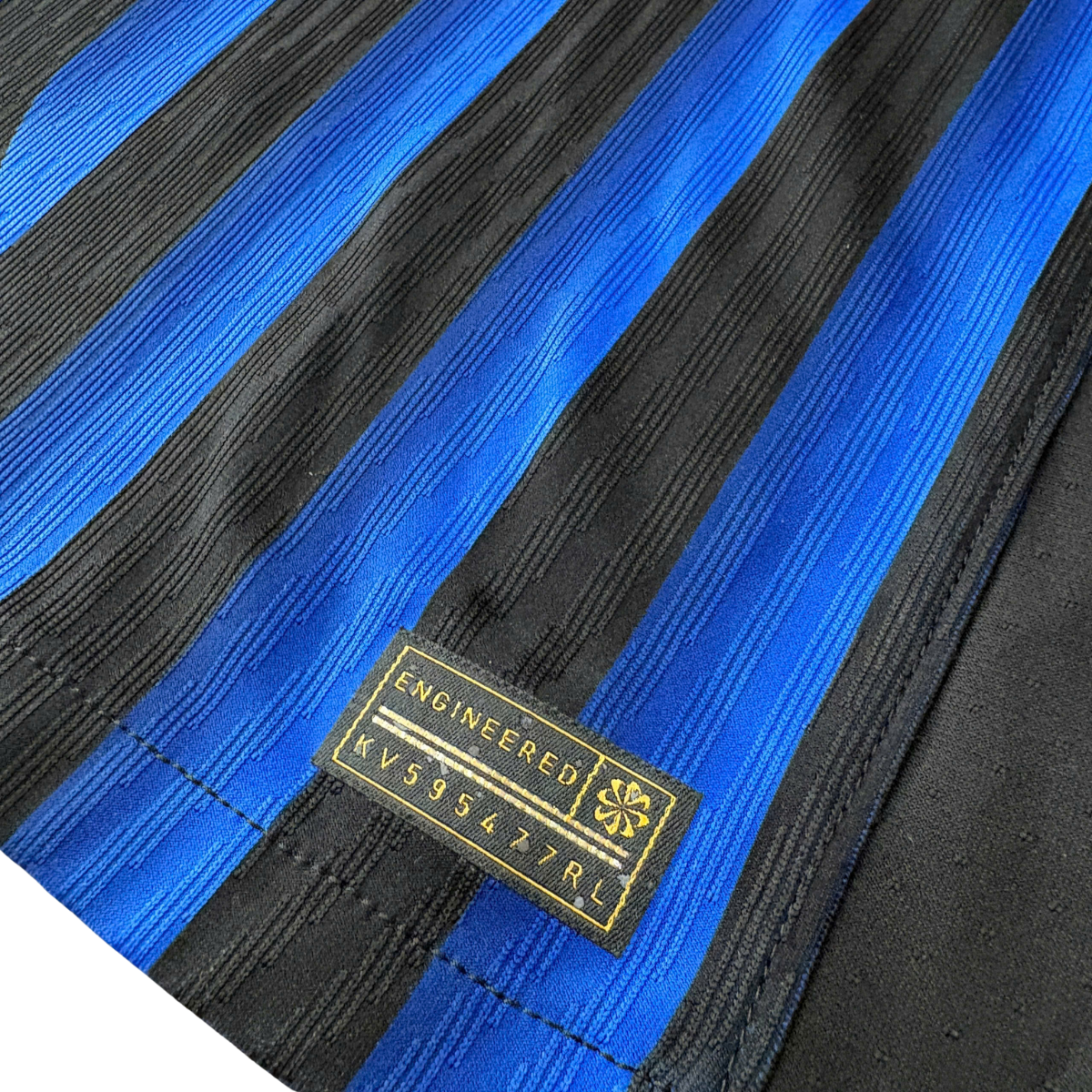 • Sọc và họa tiết ẩn chữ “INTER”: những vằn đen-xanh không chỉ là sọc, mà còn tạo hình chữ “INTER” một cách tinh tế – kiểu như fan nào nằm lòng thì sẽ thấy ngay.