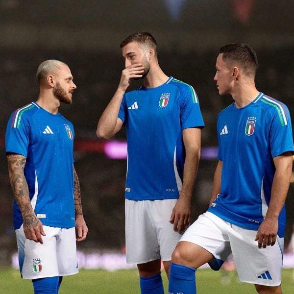 • Màu sắc & biểu tượng: Chiếc áo lấy nền xanh đặc trưng “Azzurri Blue” vốn là biểu tượng lâu đời của đội tuyển Italy.