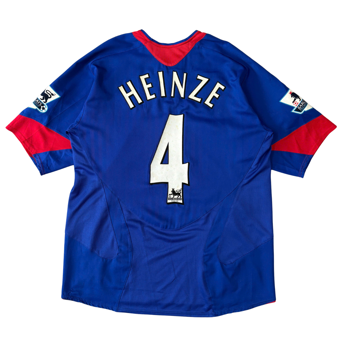 Áo bóng đá Manchester United 2005/06 sân khách chính hãng – Heinze #4 là mẫu áo mang đậm dấu ấn thời kỳ giữa thập niên 2000 của Manchester United F.C.. Thiết kế cổ điển kết hợp patch Premier League cùng nameset của hậu vệ chiến binh Gabriel Heinze tạo nên chiếc áo có giá trị sưu tầm cao với fan Quỷ Đỏ.