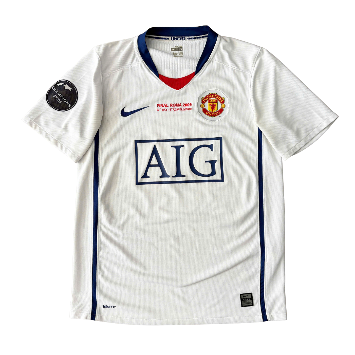 Chiếc áo bóng đá Manchester United 2008/09 sân khách chính hãng bản Fan mang đậm tinh thần thời kỳ vàng son của Quỷ Đỏ, mùa giải ghi dấu bước chạy thanh thoát của Berbatov #9. Thiết kế trắng – xanh navy biểu tượng, kèm patch Champions League + detail Final, tạo nên một item retro đầy giá trị cho mọi fan MU chân chính.