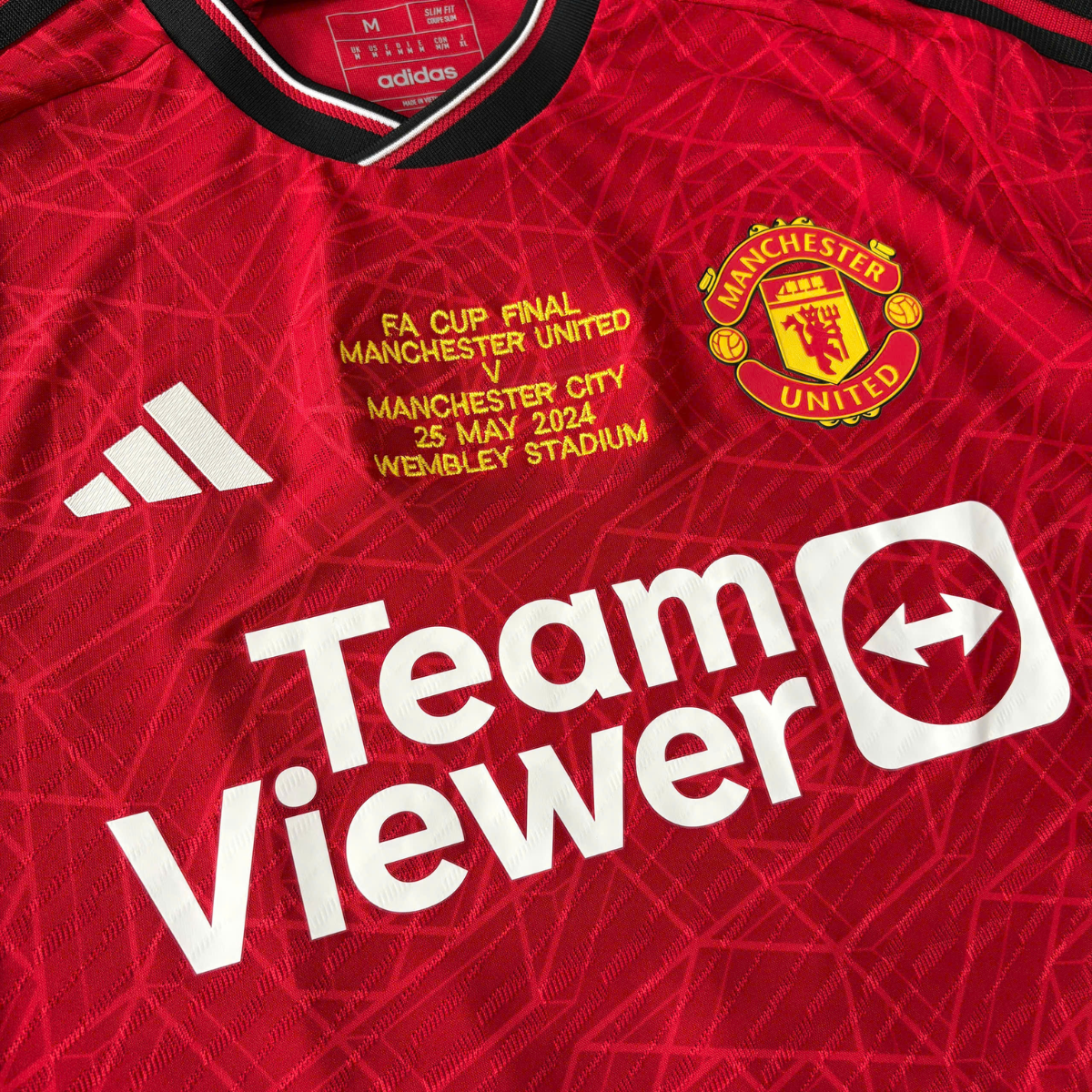 Áo bóng đá Manchester United 2023/24 sân nhà chính hãng Player IN3520 + Patch FA Cup 12 + Final Detail + Mainoo #37 – Biểu tượng Quỷ Đỏ và khoảnh khắc bước ra ánh sáng