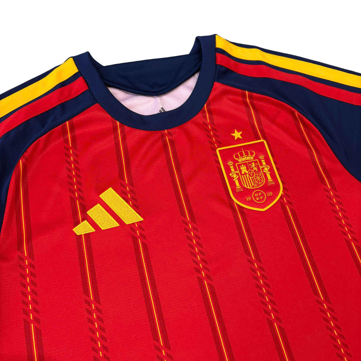 • Huy hiệu đội tuyển Tây Ban Nha được thêu trực tiếp: Sắc nét, tinh xảo – biểu tượng niềm tự hào quốc gia.
