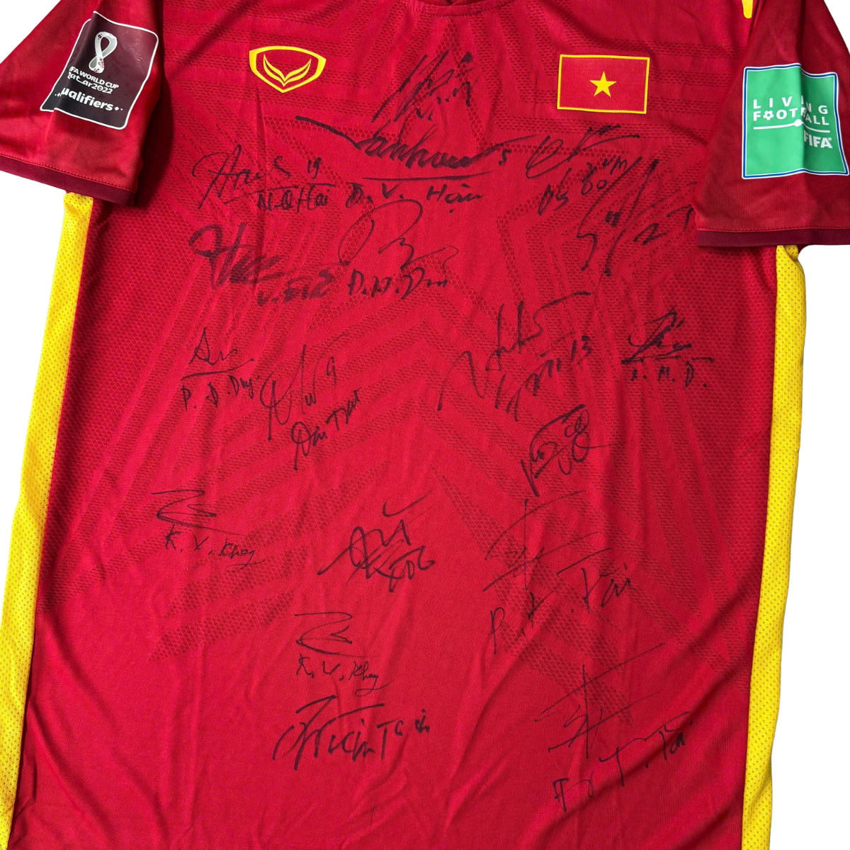 ÁO BÓNG ĐÁ VIỆT NAM 2021 SÂN NHÀ CHÍNH HÃNG PLAYER + PATCH VÒNG LOẠI WORLD CUP 2022 + CHỮ KÍ CẦU THỦ