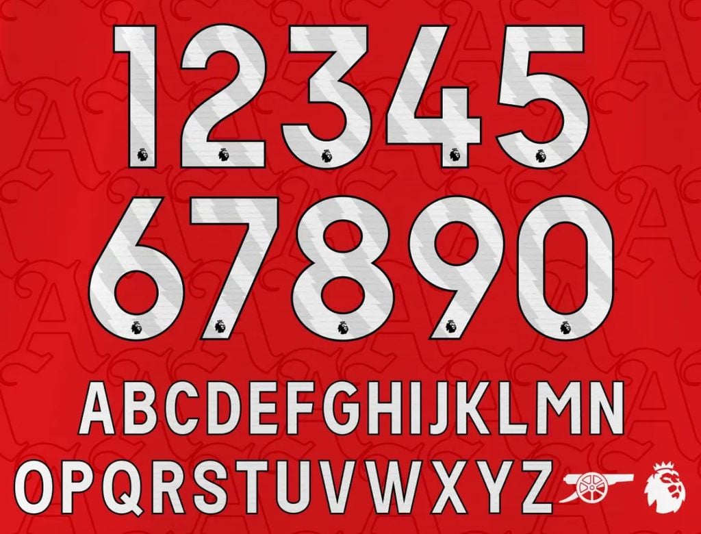 Đây là font chữ được toàn bộ các CLB Premier League áp dụng từ mùa 2023/24, với chất liệu ép nhiệt cao cấp, đảm bảo độ bền màu và khả năng bám chắc vượt trội, giữ form đẹp dù trải qua nhiều trận đấu hay lần giặt.