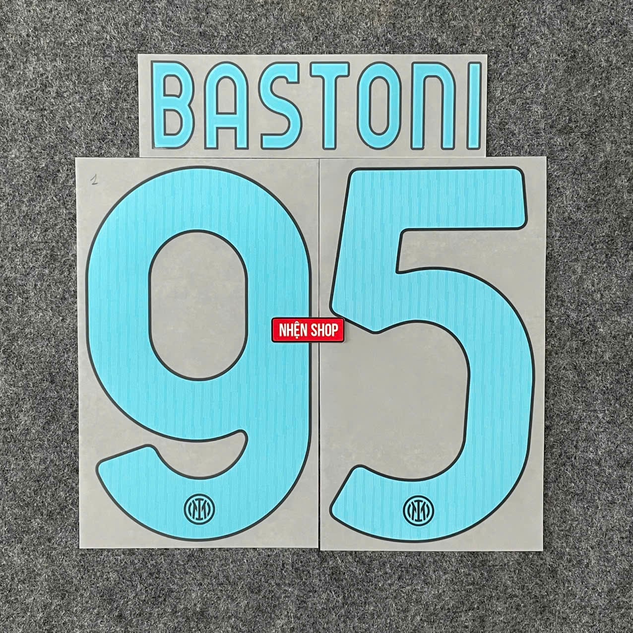 Bộ nameset Bastoni 95 chính hãng Sporting ID cho áo sân nhà Inter Milan mùa 2025/26. Thiết kế chuẩn font Serie A, mỏng nhẹ, sắc nét, bám vải chắc, bền màu – đúng chuẩn thi đấu.