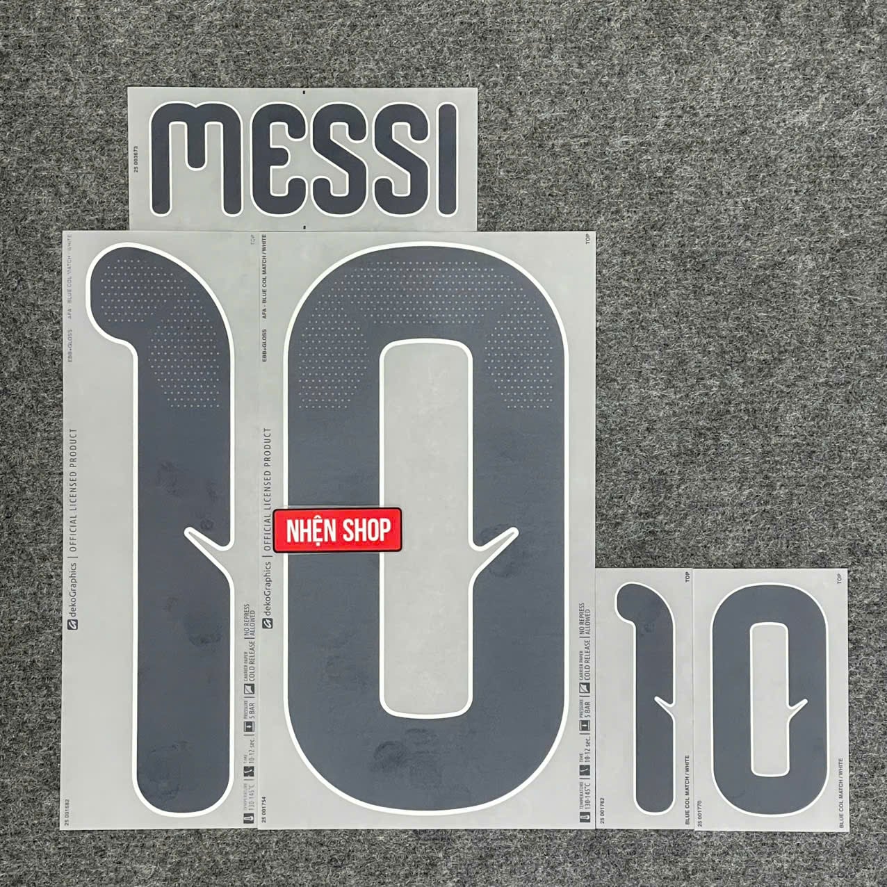 Bộ nameset Messi 10 chính hãng Sporting ID cho áo Argentina Home mùa World Cup 2026. Thiết kế đúng chuẩn font FIFA World Cup, mỏng nhẹ, sắc nét, độ bám vải cực tốt – giống hệt phiên bản mà tuyển thủ sử dụng trong trận đấu.